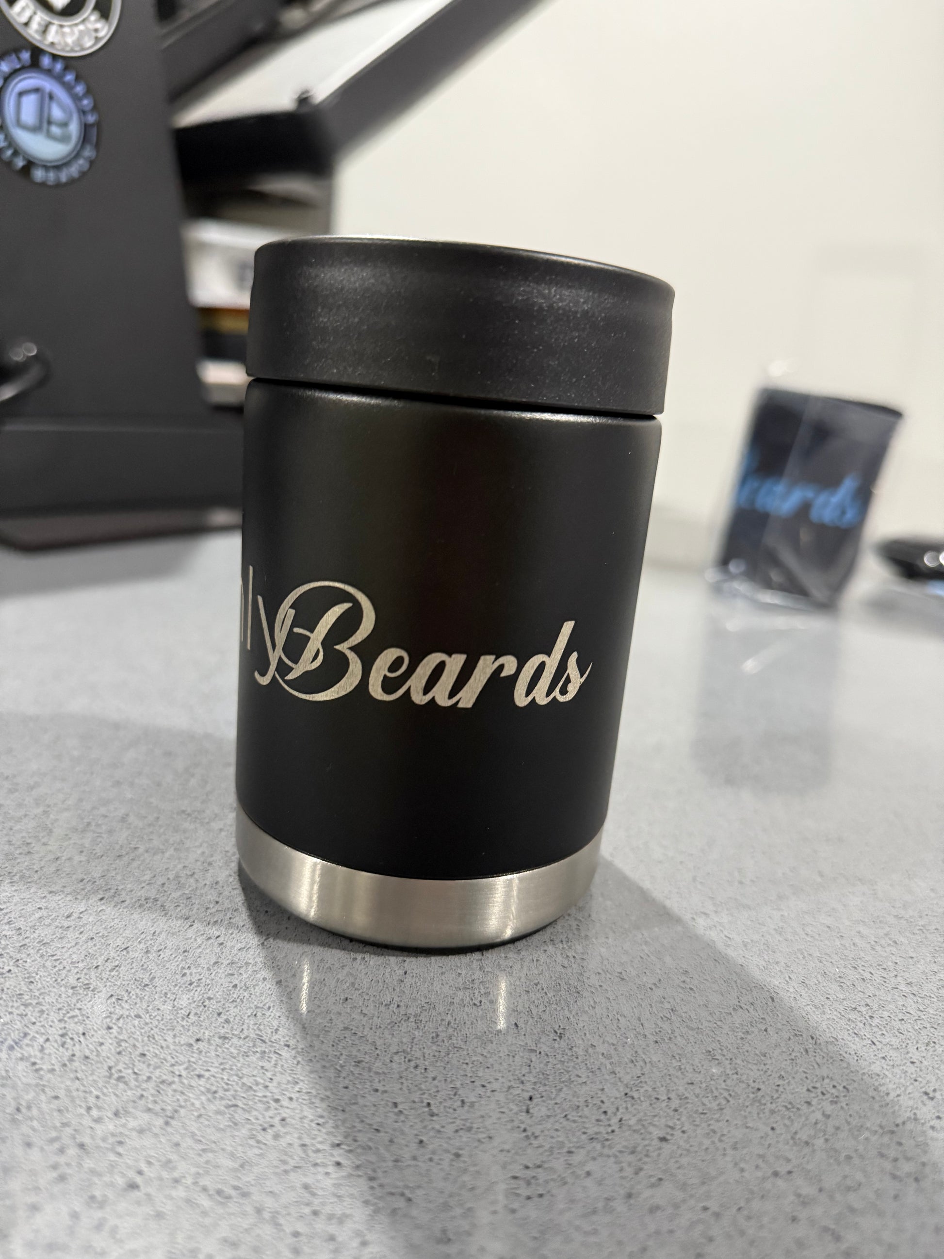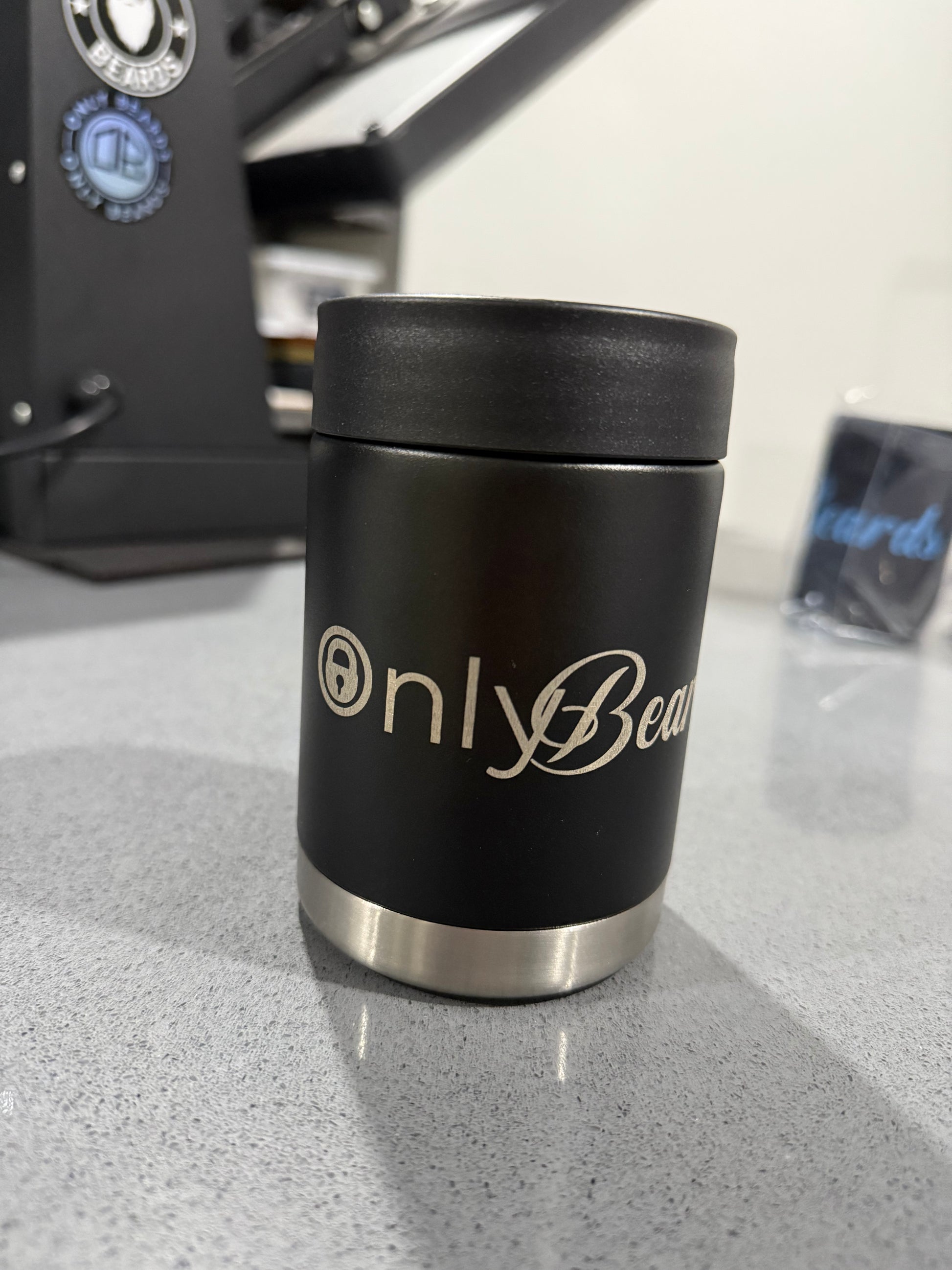 Keep canned drinks chilled with your very own Only Beards double wall insulated 10oz stubby cooler. Double-wall vacuum insulation keeps your drink at the perfect temperature, so the last sip is just as refreshing as the first! Featuring quality laser engraved Only Beards logo